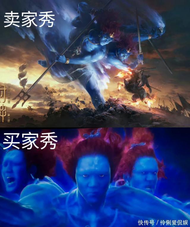 本想变成“蓝巨人”,但实际效果更像“蓝精灵”,无论是质感还是视觉感官都差了不少,和当初《封神1》上映后宣传照中的样子相去甚远,连武器也没了。