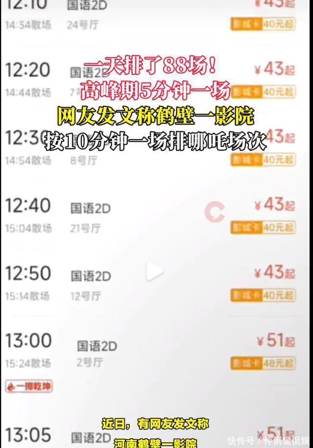 在院线的排片中,也能看出各大影院对《哪吒2》的高度重视,从场次上看《哪吒2》占据了一半以上。有网友发文,在河南鹤壁一家影院,《哪吒2》排片场次至少10分钟一场,高峰期5分钟一场,一天排了88场。
